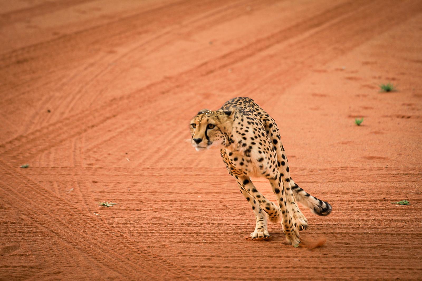 Jednym śladem będącym dowodem na obecność człowieka na terenie parku są wgłębienia pozostawione po kołach jeepów. Pomarańczowe, podwójne wstążki wiją się miękkimi łukami wzdłuż i w poprzek zielono-żółtych połaci trawy. Omijając rzadko rosnące drzewa wspinają się na wydmy. Tam koleiny są głębsze brutalnie wyżłobione przez gruby bieżnik terenowych opon.