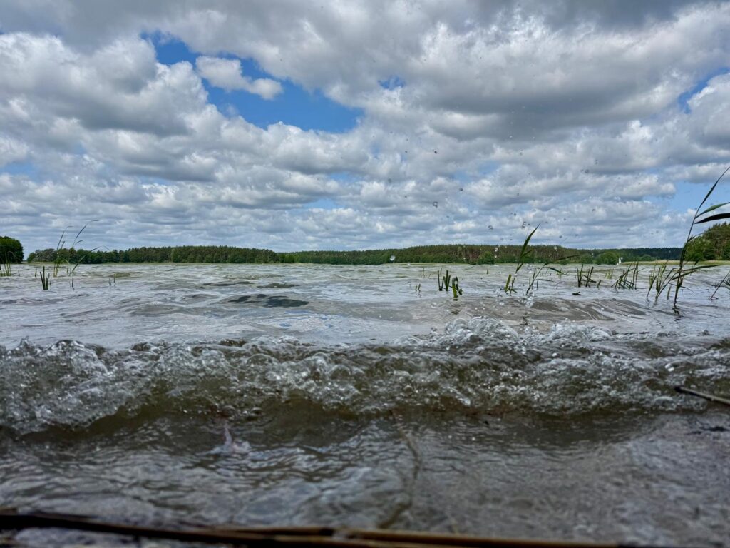 Zapytać można po co komu parawan nad jeziorem. Otóż przydaje się. Na przykład w sytuacji takiej jak dziś. Od jeziora dmie. Nie zawiewa. Nie marszczy fale, czy targa grzywkę. Tylko dmie. Urywa głowę. Porywa słowa. Napina linki. Wyrywa śledzie. Ty z wysiłkiem wbijasz je w ziemię. On pyk! i materiał znów wesoło trzepocze grożąc porwaniem. Albo napina się efektownie niczym spinaker kompletnym przypadkiem przypięty do Jeepa zamiast do dziobu jachtu. Podejmujesz kolejną próbę, a on udowadnia Ci daremność Twoich wysiłków. Pyszna zabawa. Jest szansa, że w nocy będziemy mieć wachty by pilnować tych upartych śledzi. A może trzeba było jechać w Bieszczady?