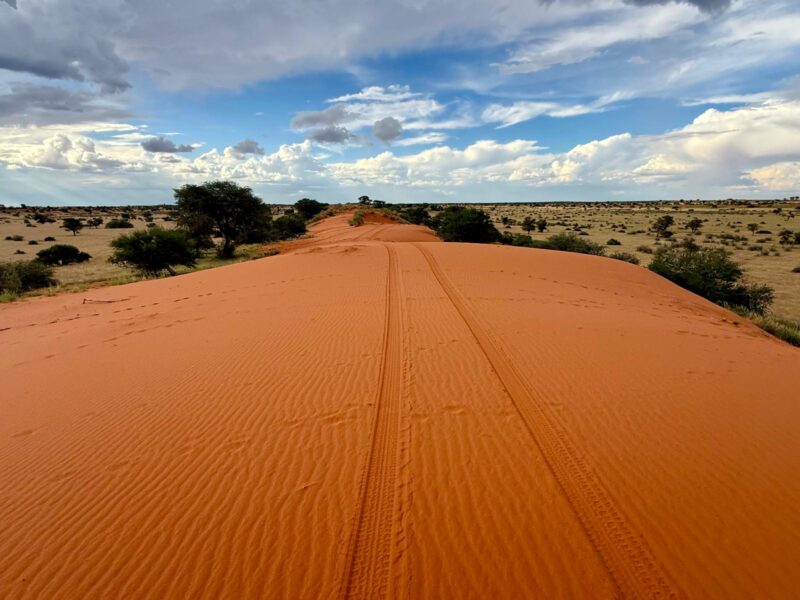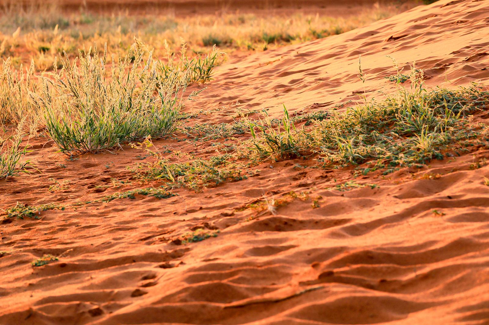 Jednym śladem będącym dowodem na obecność człowieka na terenie parku są wgłębienia pozostawione po kołach jeepów. Pomarańczowe, podwójne wstążki wiją się miękkimi łukami wzdłuż i w poprzek zielono-żółtych połaci trawy. Omijając rzadko rosnące drzewa wspinają się na wydmy. Tam koleiny są głębsze brutalnie wyżłobione przez gruby bieżnik terenowych opon.