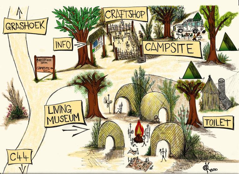 — Czy dobrze trafiliśmy? Czy to San Living Museum? Gdzie jest recepcja? – Kudłata otwiera okno rozglądając się w poszukiwaniu – no właśnie! – klasycznej reprezentacji tego słowa. Budynku, biurka, stolika, może chociaż pieńka. Czegokolwiek, co mogłoby pełnić taką funkcję. Młody człowiek, z którym rozmawiała telefonicznie przed chwilą, poinstruował ją, że recepcja będzie właśnie tu. Chyba, że źle skręcili.